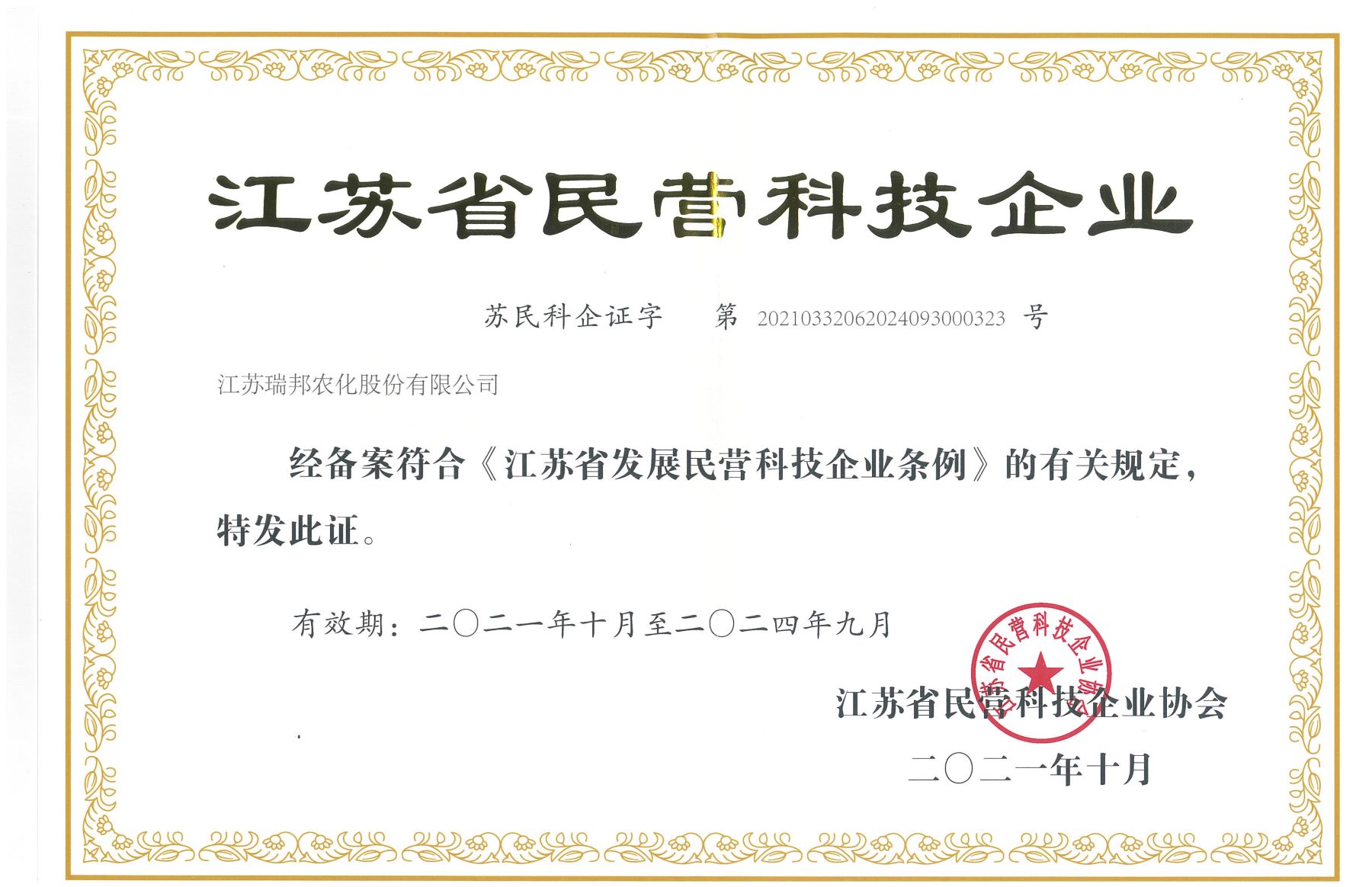 江蘇民營科技企業(有效期2024.09)