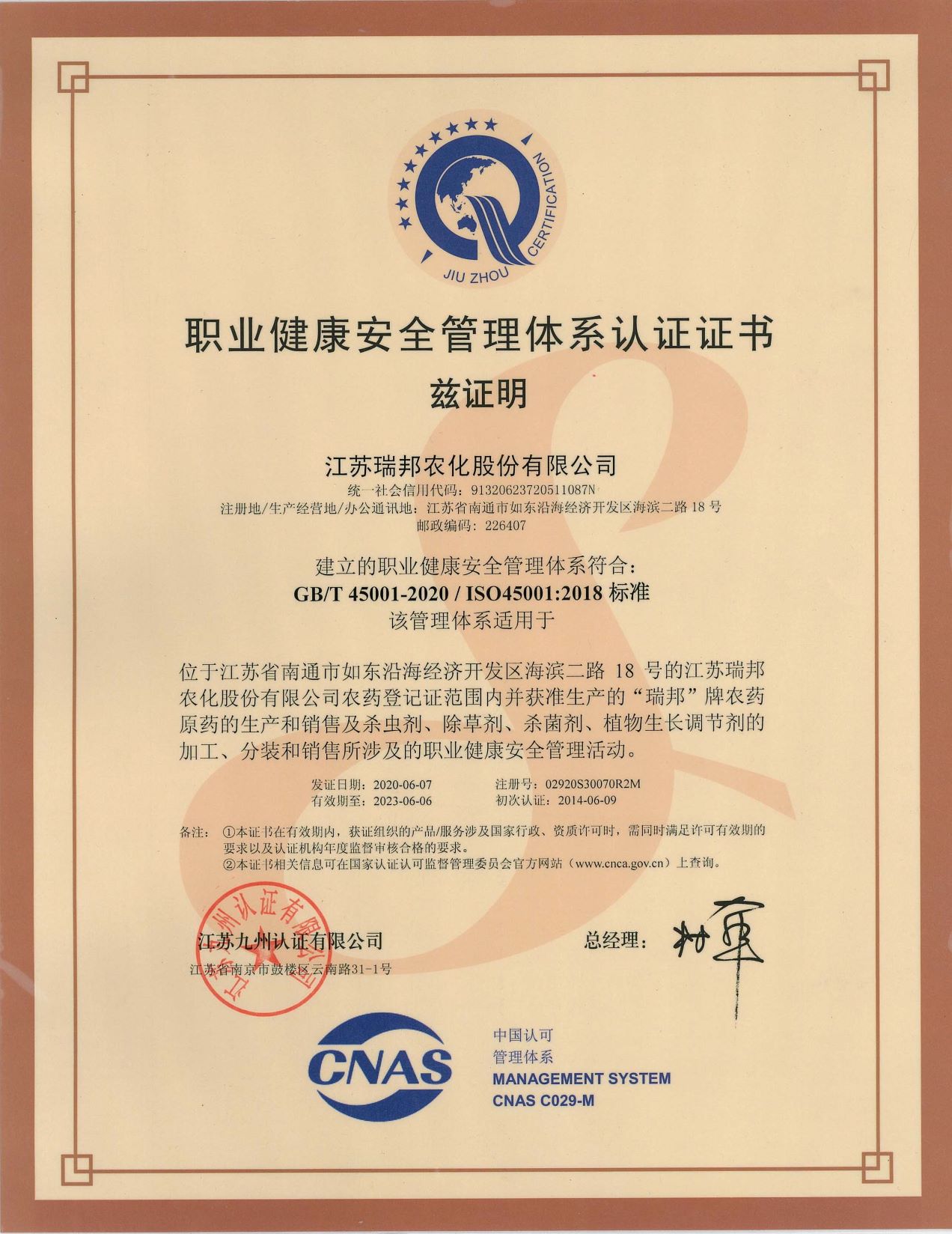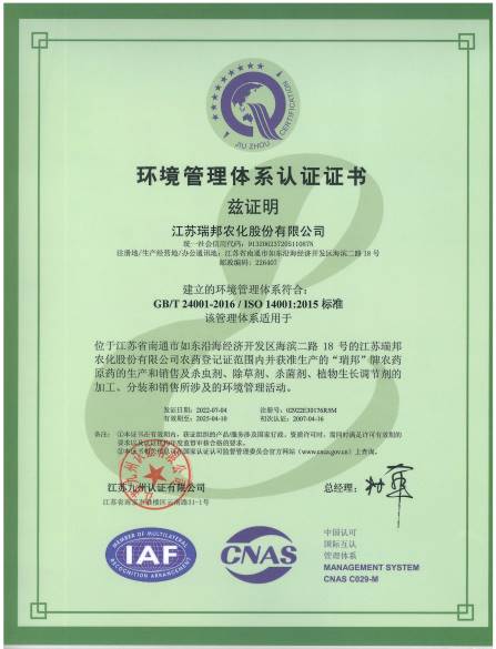 您好,歡迎訪問江蘇瑞邦農化股份有限公司公司官網!